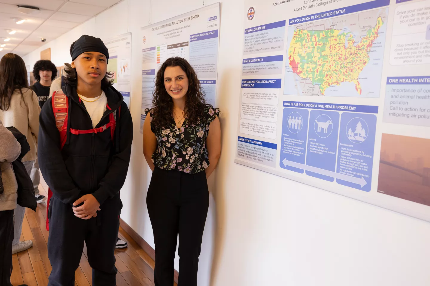 About a dozen other Lehman High School students presented posters on health concerns affecting the Bronx: climate change, unsafe housing, food insecurity, and air and noise pollution. Emma Gordon, a second-year, was among the medical students who helped guide them through it and learned from the experience: “I’m discovering ways to combine my interests in environmental issues and medicine. I think it will have a lasting impact on my career.”