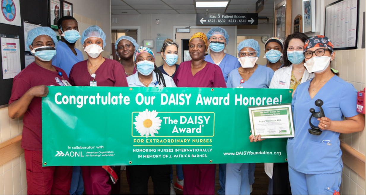 The DAISY Award, given to those fighting against Diseases Attacking the Immune SYstem, proudly honors nurses deserving of profound respect for the education, training, brainpower and skill they put into their work, and especially for the empathy with which they deliver their care. It recognizes nurses wherever they practice, in whatever role they serve, and throughout their careers—from nursing student through lifetime achievement.